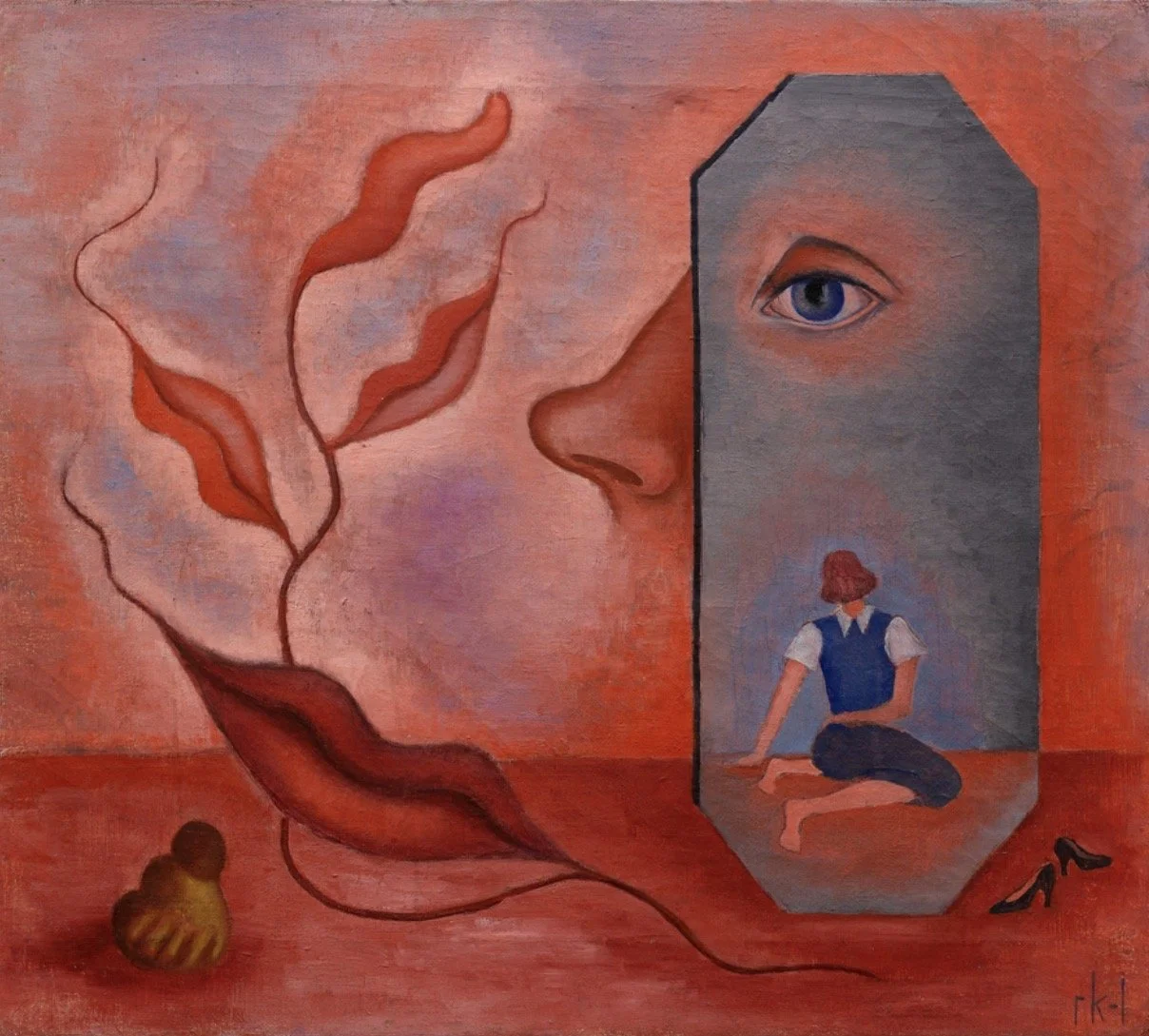 Rita Kernn-Larsen (1904-1998), Self-Portrait (Know Thyself) (Selvportrat [Kend dig selvl), 1937. Oil on canvas, 40 x 45 cm; Solomon R. Guggenheim Foundation, New York, Purchased with funds contributed by Penny Borda, Lewis and Laura Kruger, and the Guggenheim Circle, 2013.