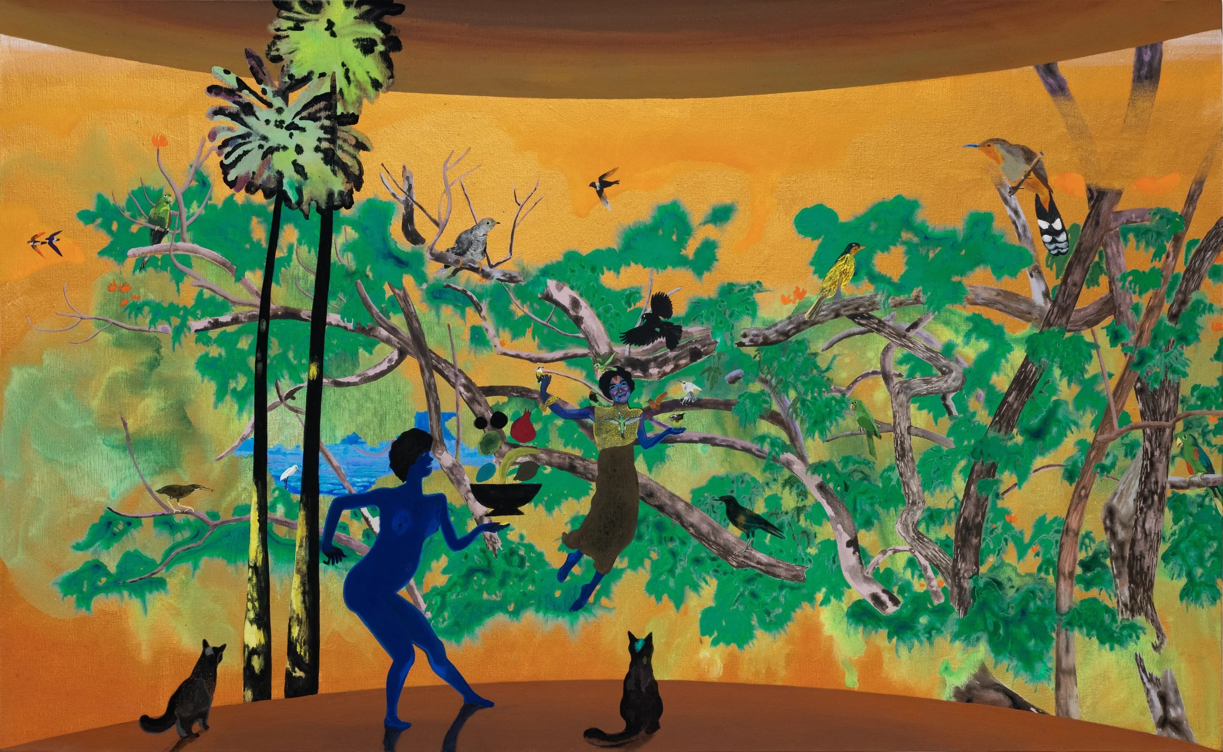 Hulda Guzmán, I'm for the birds, 2025 Acrylic gouache on linn 94 × 152.4 cm. Private Collection. © Hulda Guzmán. Courtesy of the artist and Alexander Berggruen, NY. Photo by Eduardo Ortega