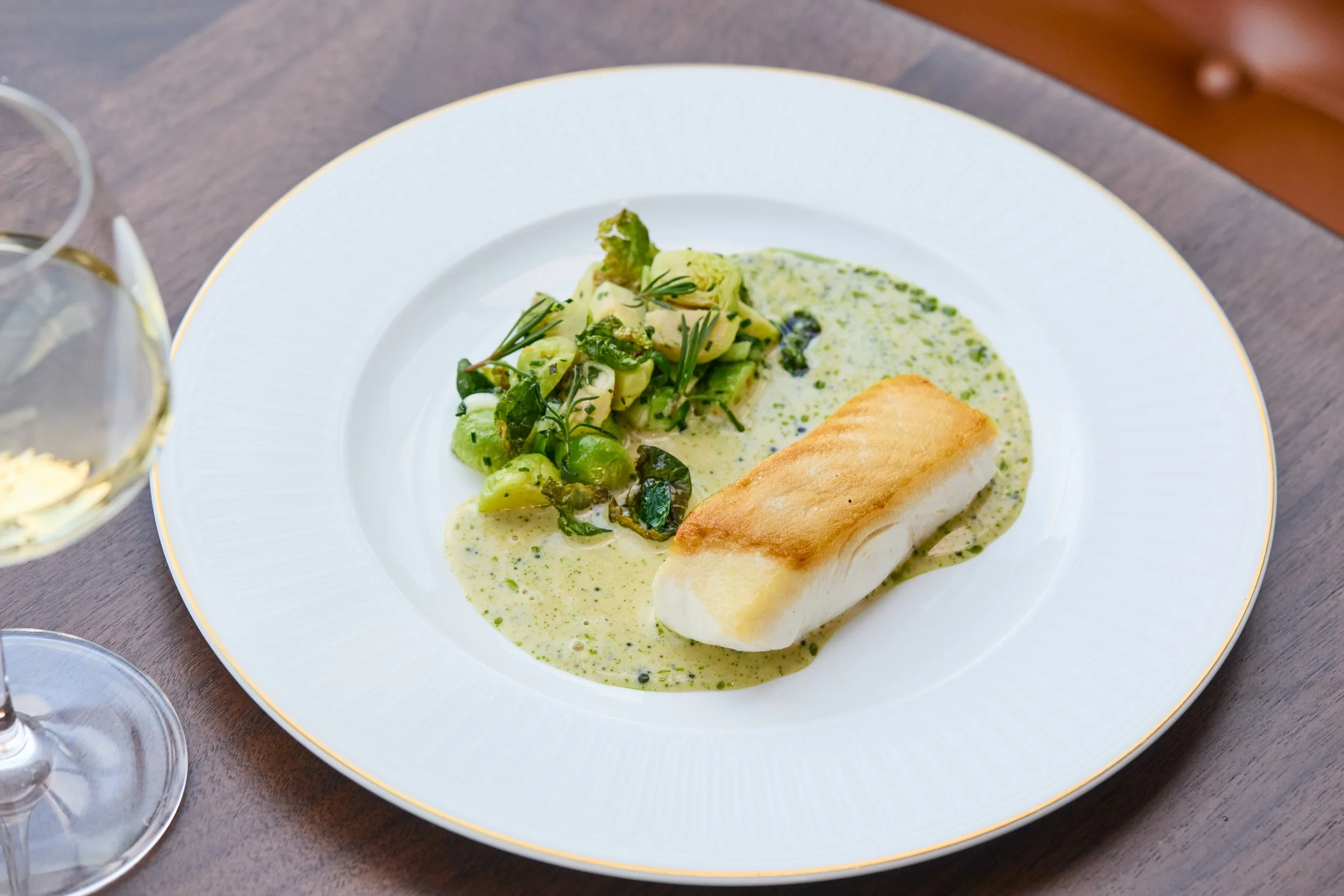 Being a bit of a purist when having oysters I was delightfully surprised by their dressed oysters. The utterly crave-worthy Raw Achill was a titillating oyster topped with skilfully brunoised crab apple, baked leek and a rich seaweed cream. The “Dressed Plants” offers an alternative to the oysters for vegetarians with spoonfuls of tasty combinations like buttered turnips with fermented chilli, mustard seeds apple crisp, and dill or braised shiitake mushrooms with pickled kale, dulse seaweed and orange oil giving a citrus lift.