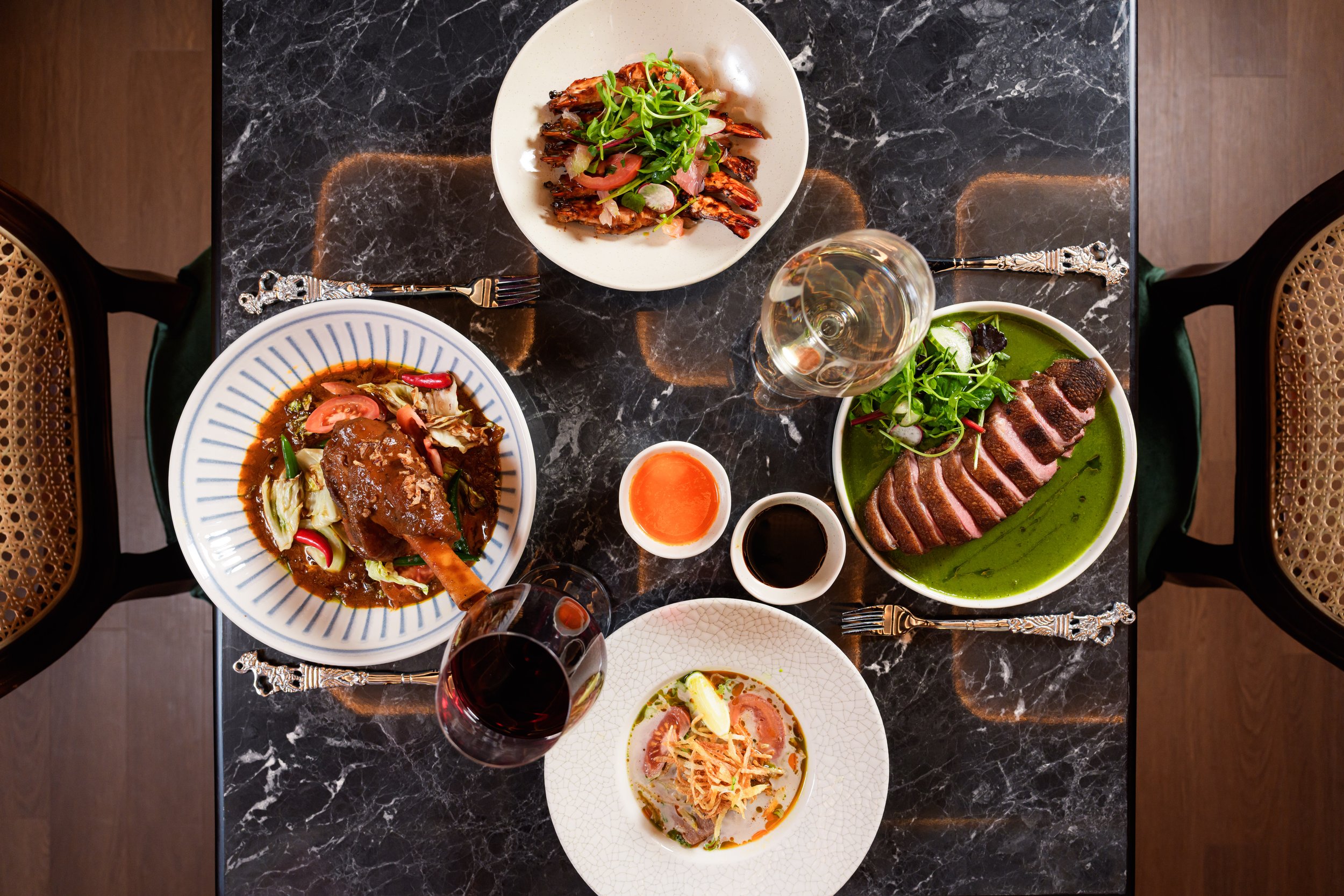 The concept is billed as “Indonesian bistronomy”, a phrase that could easily set alarm bells ringing, but in practice means something sensible. Traditional Indonesian food is communal by nature, served family-style at the centre of the table, generous and unfussy. Here, that spirit is preserved but reframed. The format follows, starters, main, and desserts which I thought might dilute its authenticity, but dishes arrive plated with care and precision, borrowing a “light touch” French technique while keeping Indonesian flavours firmly at the heart of every plate. Dishes are drawn from across the Indonesian archipelago from North Sumatra, Central Java, Bali and Betawi.