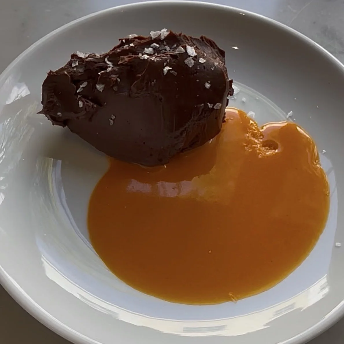 Salted dark chocolate mousse with sea buckthorn. Sova London, Notting Hill. Image credit Sofia Carierra-Wham.