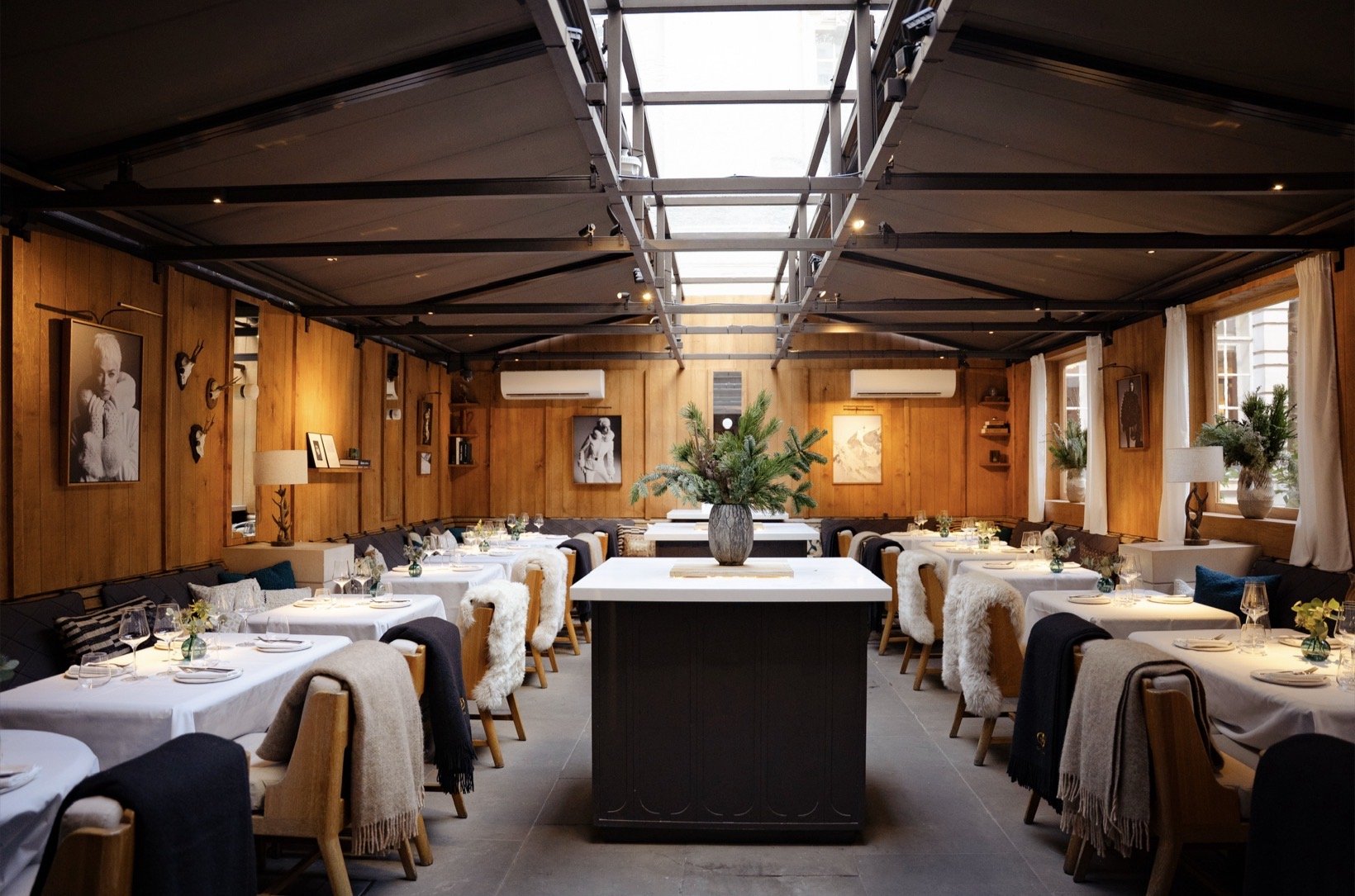 The wood panelled chalet oozes a cosy sophistication with heaters; sheepskin throws and soft blankets and David Baily-style high fashion images lining the walls. Rosewood Hotels are renowned for exceeding expectations, and the arrival of hot water bottles - should we need them - was the kind of thoughtful detail that instantly told us we were in for a memorable experience. Pops of colour come in the form of throw cushions on the banquettes and vibrant dry flower arrangements. Though The Chalet is a pop-up, it feels permanent – and I genuinely wish it was. It’s somewhere I would happily return to regularly. My young daughter thought it would be good spot for night club. Take note, Rosewood London.