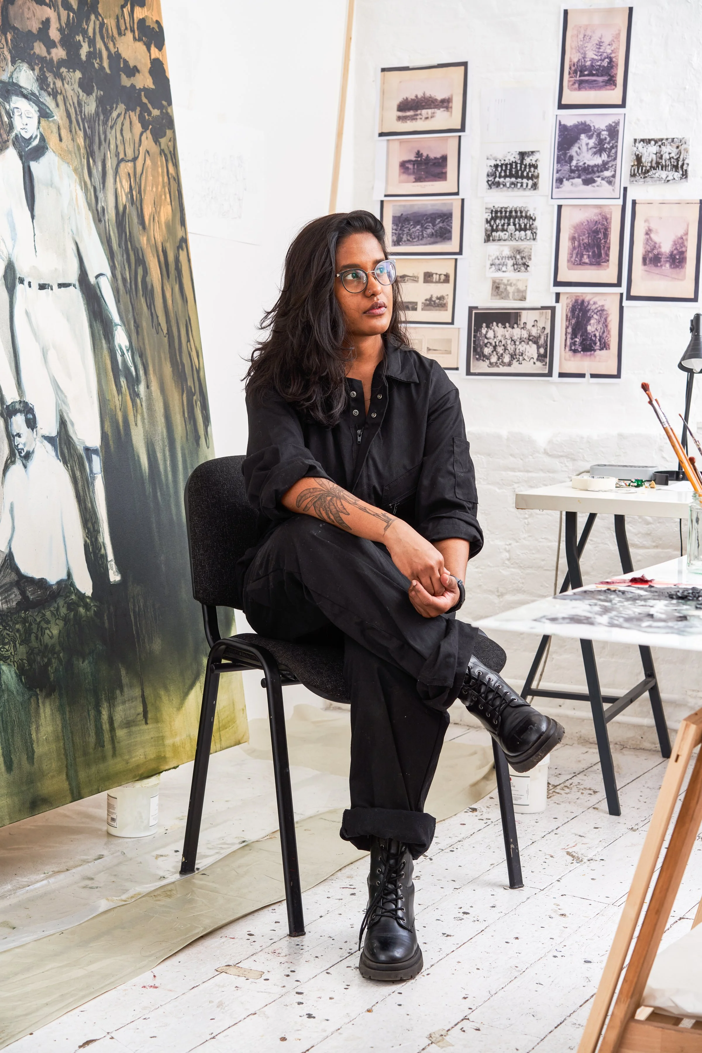 Pillayβs practice evolves from a personal process of archiving, drawing equally from family photographs and found imagery to map life-making in the wake of mass migration. As a descendant of Indian indentured labourers, Pillayβs paintings are haunted by a personal relationship to legacies of colonialism and migration. Merging the archival and imaginary, this new body of work considers the material possibilities of the medium, offering painting as a mediation between past and present, memory and experience.