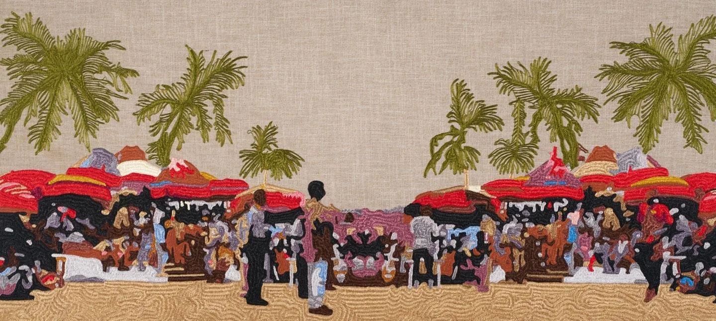 Rita Mawuena Benissan, Enter as One, 2024, Tapestry Embroidering on Velvet, 116.8 x 190.5 cm. Courtesy of Gallery 1957.