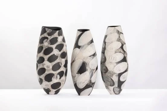 Carolyn Genders, Liquorice and All Sorts I, II and III. Ceramic Vases
