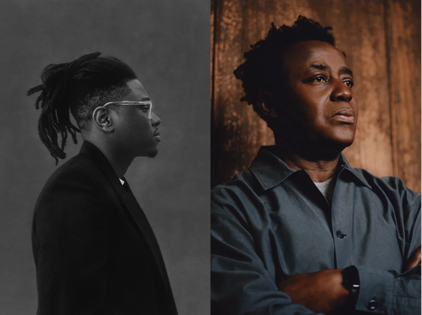 Julianknxx (left), photo by Marc Hibbert; John Akomfrah (right).